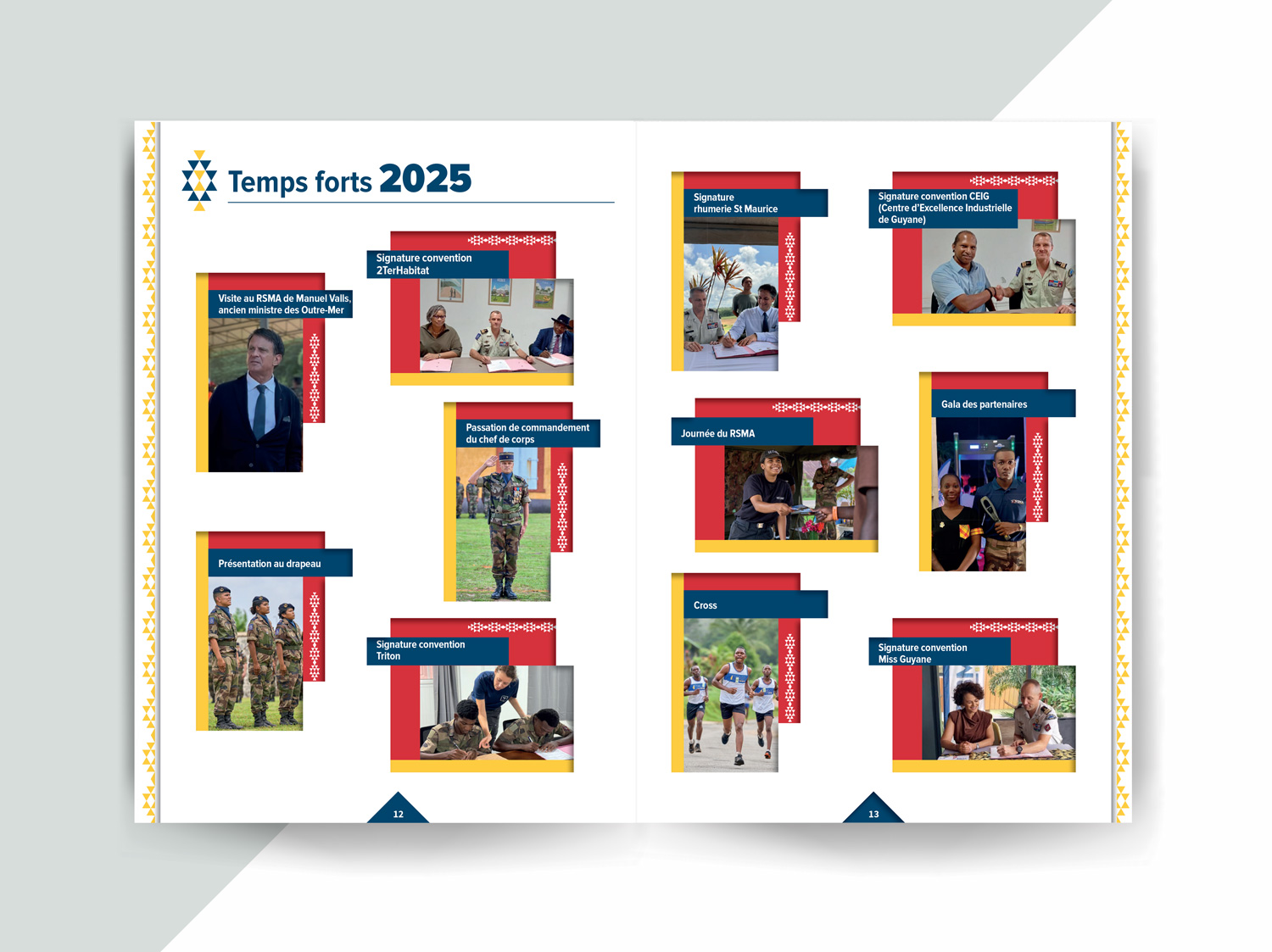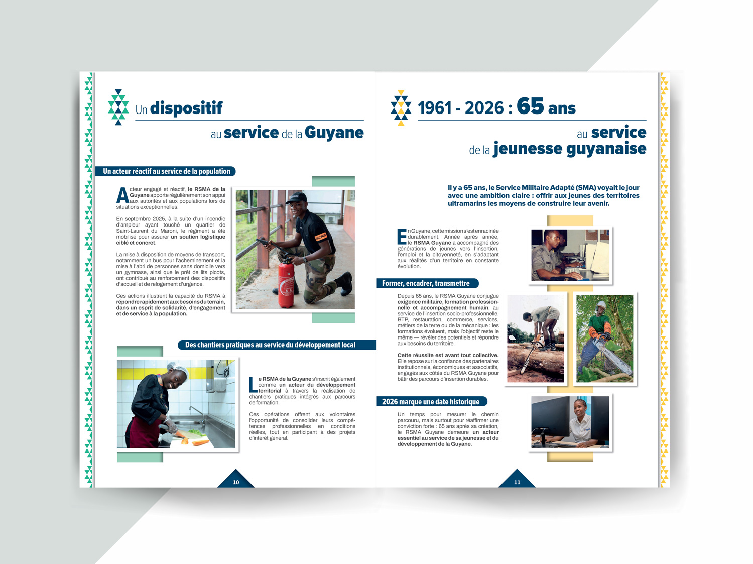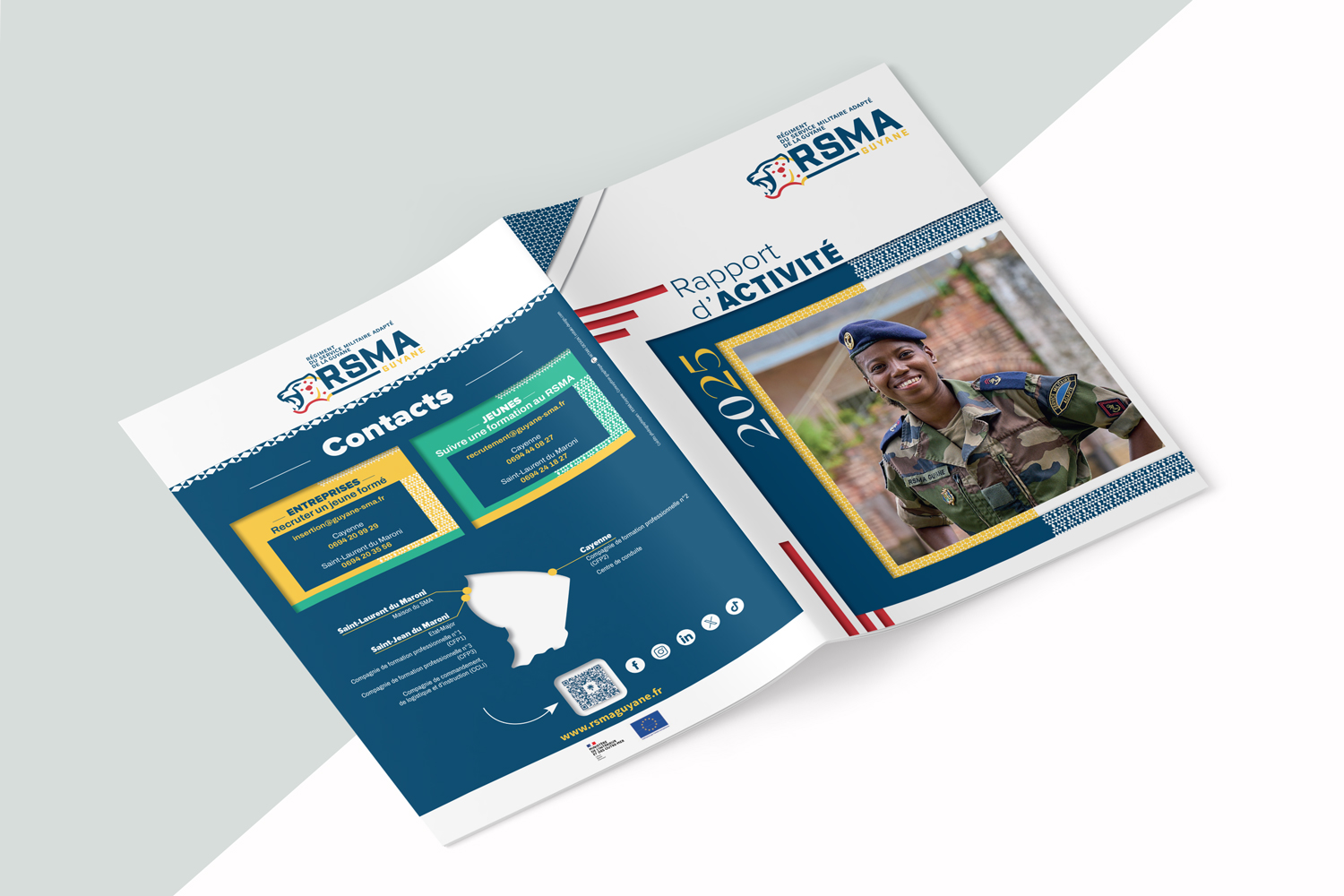 Pour la troisième année consécutive, j’ai réalisé le rapport d’activité du RSMA Guyane. Ce rapport annuel s’inscrit dans la continuité graphique des éditions précédentes, avec l’objectif de construire au fil des années une identité éditoriale claire et reconnaissable.